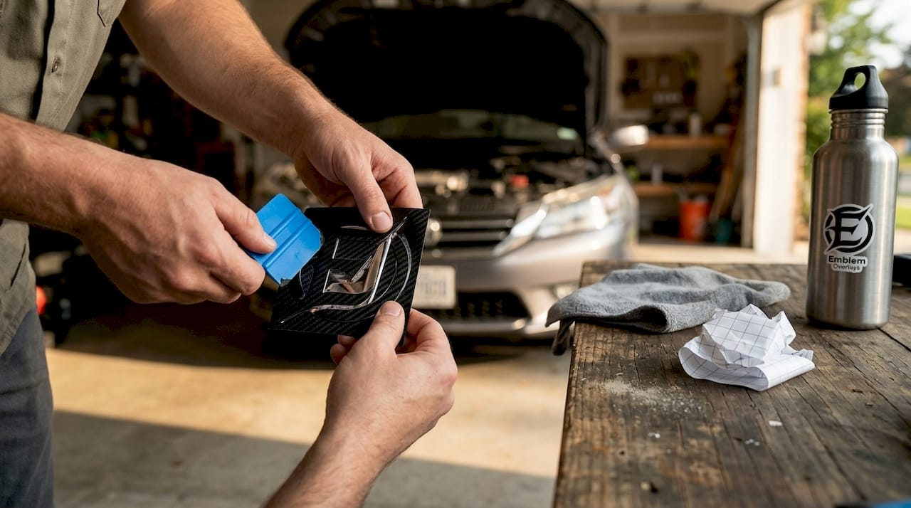 With your tools and materials ready, focus next on prepping the emblem itself so the overlay can perform at its best. This step is where most DIYers cut corners, and it's exactly where most installations fail. Proper cleaning ensures overlays adhere well and last longer, so treat this stage as seriously as the application itself.