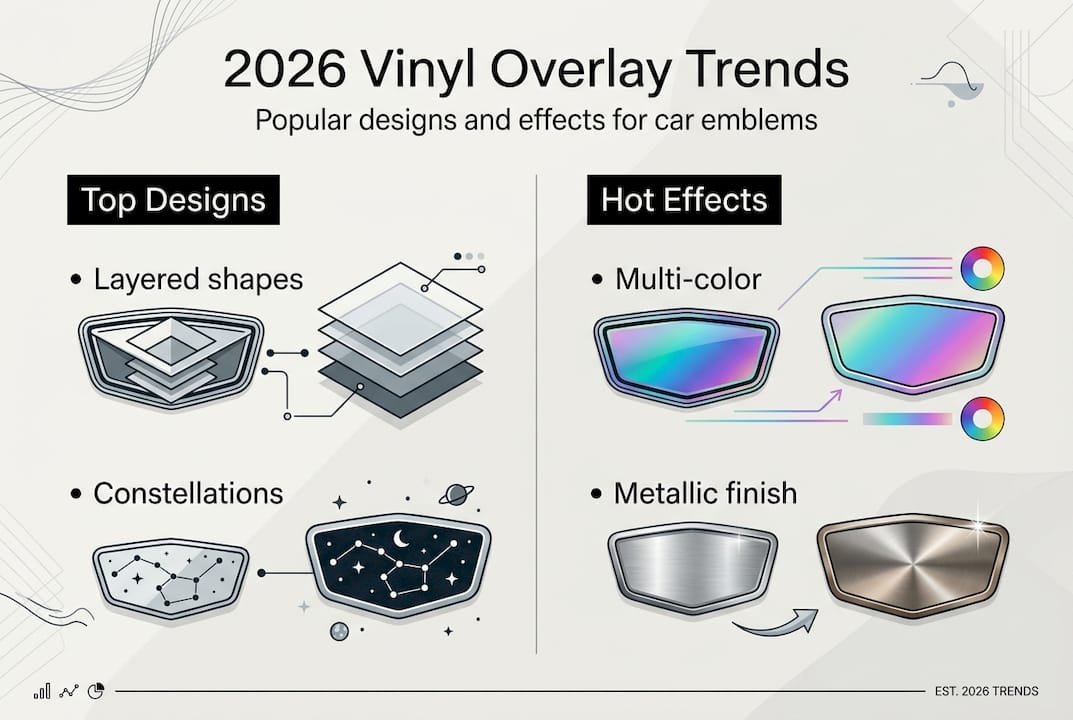 For those exploring vinyl emblem overlays 2026 trends, the focus has shifted toward more intricate designs and premium materials that deliver professional results. The best overlays now feature precision-cut edges that align perfectly with emblem contours, creating a seamless appearance that looks factory-installed.