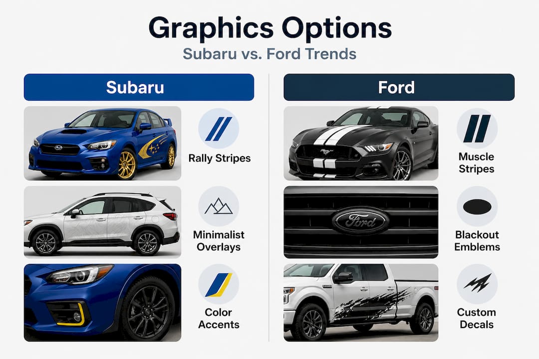 Why unique car graphics matter for Subaru and Ford enthusiasts